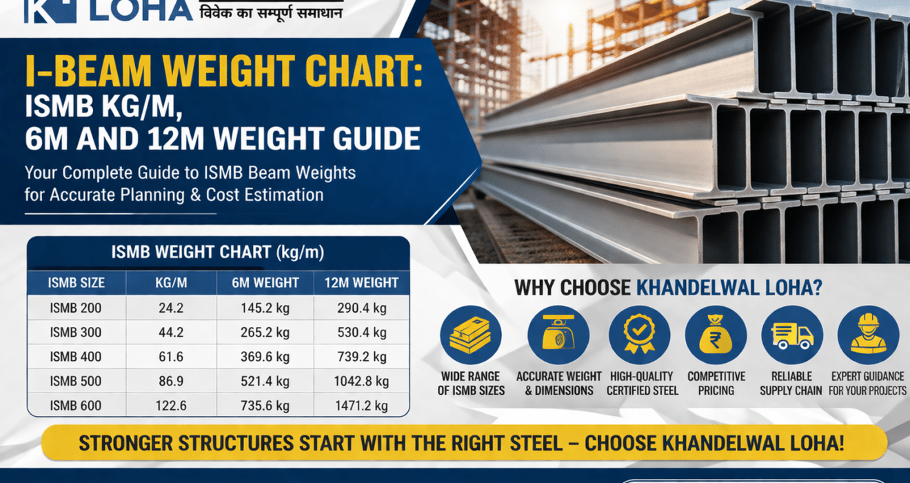 Khandelwal Loha Pvt Ltd > Blogs > Blogs > I-Beam Weight Chart: ISMB Kg/m, 6m and 12m Weight Guide